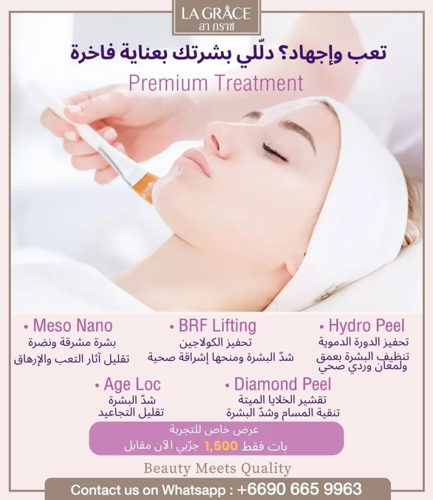 La Grace Clinic تقدم تريتمنت الوجه في بانكوك كخيار مثالي للعناية بالبشرة بدون ألم وبدون توقف عن أنشطتك السياحية.
